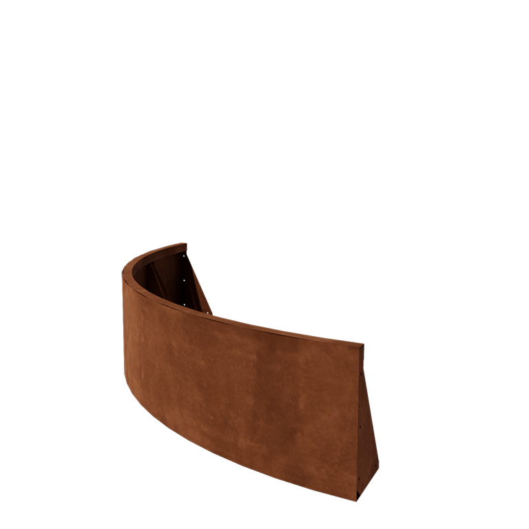 Atlenkimo sienos gaminamos iš aukštos kokybės Corten-A plieno. Ši metalų rūšis turi unikalią savybę – ji formuoja labai tankų oksido sluoksnį (rūdžių sluoksnį). Dėl to rūdijimas yra neįmanomas. Tankus oksido sluoksnis apsaugo gilesnį medžiagos sluoksnį nuo deguonies, todėl oksidacija labai sulėtėja, nors korozija tęsiasi. Atlenkimo sienos pristatomos nerūdijančios, pilkos metalinės spalvos. Rūdijimo procesas prasideda per pirmas 2 mėnesius, tam nereikia jokios papildomos priežiūros. Rūdijimo proceso metu atlenkimo sienos gali palikti pėdsakus. Corten plienas yra metalų lydinys, sudarytas iš geležies, prie kurio pridedama vario, fosforo, silicio, nikelio ir chromo.