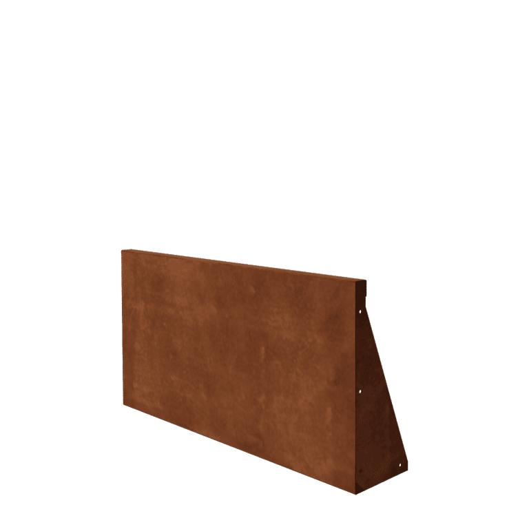 Sukurkite tvirtas, tvarkingas ribas su šia tiesia 100 x 50 cm atramine sienele. 2 mm Corten plieno plokštė atlaiko grunto spaudimą be įtvirtinimo į pagrindą. Naudodami pridedamą montavimo medžiagą, sieneles greitai sujunkite į didesnes atitvaras. Rūdijimo procesas prasidės per kelias savaites ar mėnesius, o matoma šilta oranžinė rudai spalva susiformuos palaipsniui. Visas rūdijimo procesas gali trukti 1–2 metus. Užsisakykite dabar ir mėgaukitės patvaria, nereikalaujančia daug priežiūros ir laikui nepavaldaus dizaino atitvara.