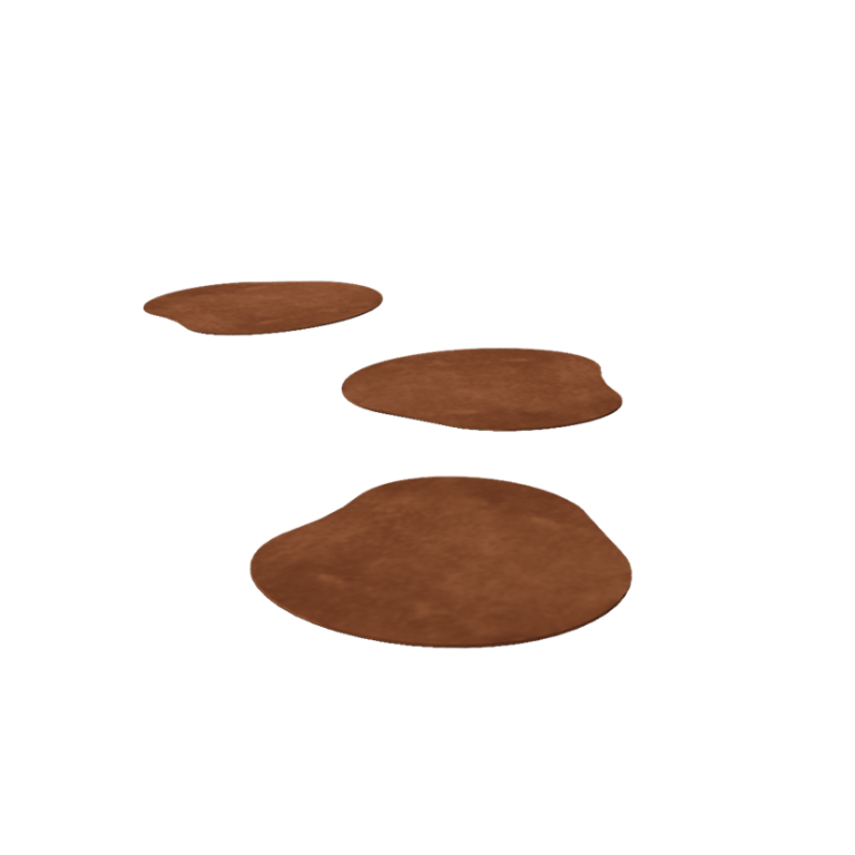 Šios žingsnio plytelės, kitaip vadinamos lauko akmenimis, pagamintos iš paties corten plieno. Jas galima naudoti bet kur savo sode: smėlyje, vejoje, tarp augalų ar kitose sodo vietose. Žingsnio plytelės dedamos ant žemės arba vejos, per jas gali pravažiuoti žoliapjovė.