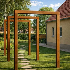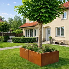 Mūsų modulinių sodinukų plokštės gaminamos iš aukštos kokybės Corten-A plieno lakštų. Šios rūšies metalas pasižymi unikalia savybe sudaryti labai tankią oksido dangą (rūdžių sluoksnį). Todėl rūdys per ją neprasiskverbia. Tankus oksido sluoksnis apsaugo pagrindinę medžiagą nuo deguonies, todėl labai sulėtėja oksidacija, o korozija tęsiasi. Corteno plieno sodinukas pristatomas nerūdijantis, pilkos metalo spalvos. Rūdijimo procesas prasideda po kelių savaičių ar 2 mėnesių; apdoroti nereikia. Vykstant rūdijimo procesui, sodinukas gali nulūžti. Corteno plienas yra metalo lydinys, sudarytas iš geležies, į kurią pridėta vario, fosforo, silicio, nikelio ir chromo.
