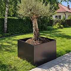 Šis sodinukas yra modulinis plieninis sodinukas, pateikiamas kaip rinkinys. Sodinukas sukonstruotas iš atskirų plokščių ir kampinių dalių. Sodinukus galima sujungti visiškai aklinai. Nesimato jokių tvirtinimo detalių. Dėl mūsų modulinės sistemos galimi ir labai dideli matmenys. Naudojant kampinius elementus, galimos unikalios formos, kurių niekur kitur standartiškai nėra. Daugiau informacijos rasite vadove.