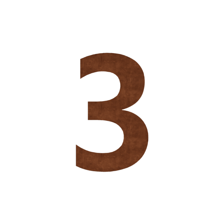Šis namo numeris turi tarpines, kurios užtikrina, kad namo numeris būtų pritvirtintas nedideliu atstumu nuo sienos. Tarpinės užtikrina elegantišką galutinį rezultatą, kai atrodo, tarsi namo numeris plauktų. Montuodami įsukite pridedamus srieginius kaiščius į tarpiklių sriegį ir įstumkite juos į sienoje išgręžtą skylę (užpildytą hermetiku). Išdžiūvus sandarikliui, namo numeris lieka tvirtai pritvirtintas sienoje. Namo numeris tiekiamas nerūdijantis, pilkos metalo spalvos. Rūdijimo procesas prasideda per pirmuosius 2 mėnesius; jo apdoroti nereikia. Rūdijimo proceso metu namo numeris gali nusitrinti.