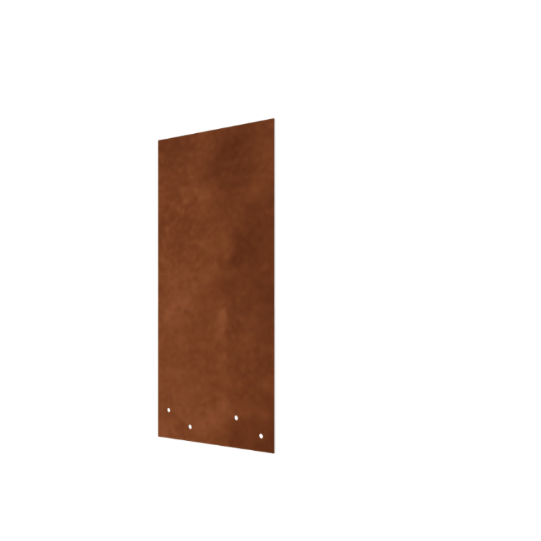 Medžiaga Ši jungiamoji plokštė pagaminta iš aukštos kokybės Corten-A plieno plokštės. Šios rūšies metalas pasižymi unikalia savybe sudaryti labai tankią oksido plėvelę (rūdžių sluoksnį). Dėl to rūdžių prasiskverbimas yra neįmanomas. Tankus oksido sluoksnis apsaugo giliau gulinčią medžiagą nuo deguonies, todėl oksidacija gerokai sulėtėja, o korozija tęsiasi. Sukabinimo plokštė tiekiama be rūdžių, pilko metalo spalvos. Rūdijimo procesas prasideda per pirmuosius du mėnesius; apdoroti nereikia. Vykstant rūdijimo procesui, apvadas gali nusilupti. Korteno plienas yra metalo lydinys, sudarytas iš geležies, į kurią pridėta vario, fosforo, silicio, nikelio ir chromo.