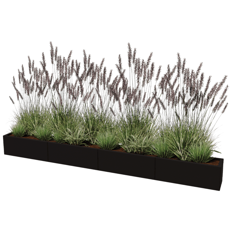 Šis sodinukas yra modulinis plieninis sodinukas, pateikiamas kaip rinkinys. Sodinukas sukonstruotas iš atskirų plokščių ir kampinių dalių. Sodinukus galima sujungti visiškai aklinai. Nematyti jokių tvirtinimo detalių. Mūsų modulinė sistema taip pat leidžia pasiekti labai didelius matmenis. Naudojant kampinius elementus galima sukurti unikalias formas, kurių niekur kitur standartiškai nėra. Daugiau informacijos rasite vadove.