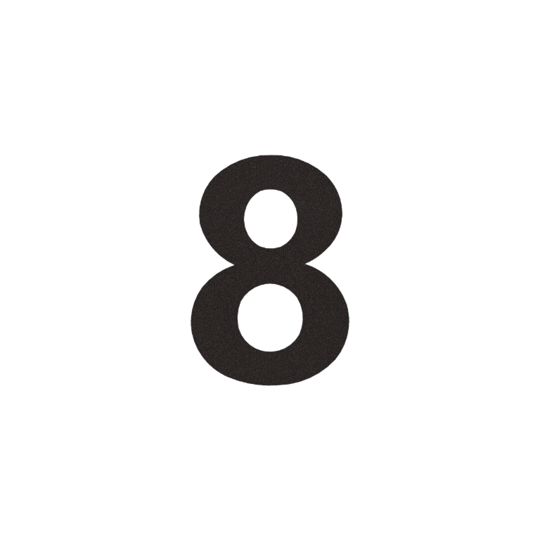 Nerūdijančio plieno namo numeris 8 - 20,7 x 30 cm - RAL9005 Smulki tekstūra (juoda)