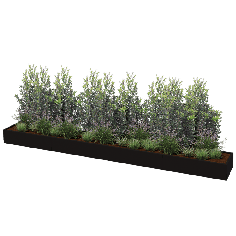 Šis sodinukas yra modulinis plieninis sodinukas, pateikiamas kaip rinkinys. Sodinukas sukonstruotas iš atskirų plokščių ir kampinių dalių. Sodinukus galima sujungti visiškai aklinai. Nematyti jokių tvirtinimo detalių. Mūsų modulinė sistema taip pat leidžia pasiekti labai didelius matmenis. Naudojant kampinius elementus galima sukurti unikalias formas, kurių niekur kitur standartiškai nėra. Daugiau informacijos rasite vadove.
