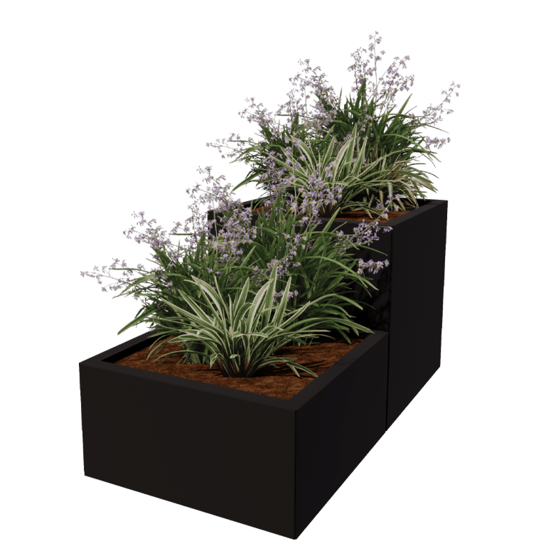 Šių vazonų plokštėsgaminamos iš aukštos kokybės sendinto cinkuoto plieno, o vėliau dažomos milteliniu būdu bet kuria RAL spalva . Tai atliekama specialiai jums. Todėl visada turėsite aukščiausios kokybės sodinuką. Miltelinis dažymas - tai elektrostatinis procesas, kurio metu milteliai ant metalo užpurškiami purkštuvu. Kietėjimo krosnyje metu dėl karščio miltelių dalelės pirmiausia tampa skystos. Tada jos tampa klampios ir galiausiai sukietėja į gražią, patvarią dangą. Dėl šios dangos vazonas tampa itin atsparus UV spinduliams. Šis vazonas tinka kiekviename sode ir traukia akį.