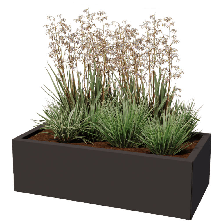 Šių vazonų plokštėsgaminamos iš aukštos kokybės sendinto cinkuoto plieno, o vėliau dažomos milteliniu būdu bet kuria RAL spalva . Tai atliekama specialiai jums. Todėl visada turėsite aukščiausios kokybės sodinuką. Miltelinis dažymas - tai elektrostatinis procesas, kai milteliai ant metalo užpurškiami purkštuvu. Kietėjimo krosnyje metu dėl karščio miltelių dalelės pirmiausia tampa skystos. Paskui jos tampa klampios ir galiausiai sukietėja į gražią, patvarią dangą. Dėl šios dangos vazonas tampa itin atsparus UV spinduliams. Šis vazonas tinka kiekviename sode ir traukia akį.