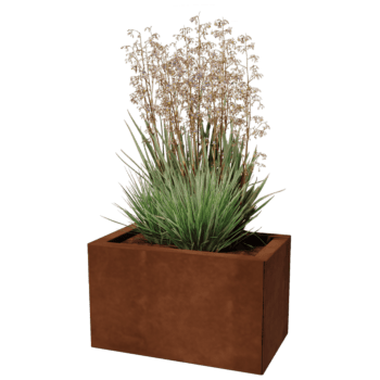 Šių vazonų plokštėsgaminamos iš aukštos kokybės sendinto cinkuoto plieno, o vėliau dažomos milteliniu būdu bet kuria RAL spalva . Tai atliekama specialiai jums. Todėl visada turėsite aukščiausios kokybės sodinuką. Miltelinis dažymas - tai elektrostatinis procesas, kai milteliai ant metalo užpurškiami purkštuvu. Kietėjimo krosnyje metu dėl karščio miltelių dalelės pirmiausia tampa skystos. Paskui jos tampa klampios ir galiausiai sukietėja į gražią, patvarią dangą. Dėl šios dangos vazonas tampa itin atsparus UV spinduliams. Šis vazonas tinka kiekviename sode ir traukia akį.