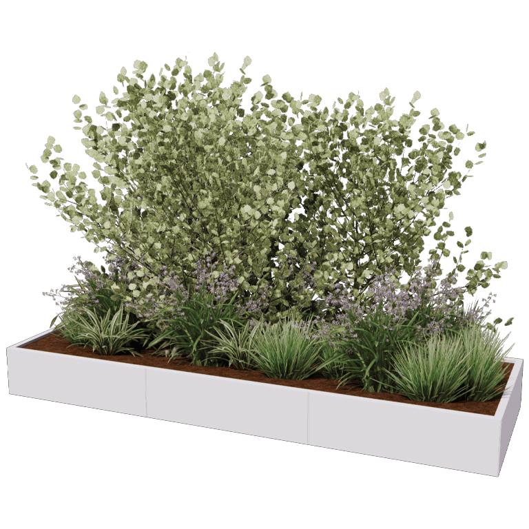 Šis sodinukas yra modulinis plieninis sodinukas, pateikiamas kaip rinkinys. Sodinukas sukonstruotas iš atskirų plokščių ir kampinių dalių. Sodinukus galima sujungti visiškai aklinai. Nematyti jokių tvirtinimo detalių. Mūsų modulinė sistema taip pat leidžia pasiekti labai didelius matmenis. Naudojant kampinius elementus galima sukurti unikalias formas, kurių niekur kitur standartiškai nėra. Daugiau informacijos rasite vadove.