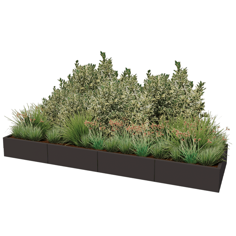 Šis augalų vazonas yra modulinis plieno vazonas, kuris tiekiamas kaip statybų rinkinys. Vazonas sudarytas iš atskirų panelių ir kampinių elementų. Vazonai gali būti sujungti visiškai nematomai. Nėra jokių matomų tvirtinimų. Dėl mūsų modulinės sistemos galima gaminti ir labai didelius dydžius. Naudojant kampinius elementus, galima sukurti unikalius formas, kurių kitur standartizuotai gauti neįmanoma. Daugiau informacijos rasite vadove.