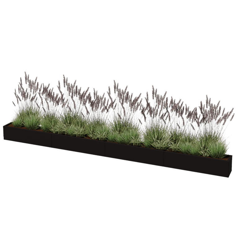 Šis sodinukas yra modulinis plieninis sodinukas, pateikiamas kaip rinkinys. Sodinukas sukonstruotas iš atskirų plokščių ir kampinių dalių. Sodinukus galima sujungti visiškai aklinai. Nematyti jokių tvirtinimo detalių. Mūsų modulinė sistema taip pat leidžia pasiekti labai didelius matmenis. Naudojant kampinius elementus galima sukurti unikalias formas, kurių niekur kitur standartiškai nėra. Daugiau informacijos rasite vadove.