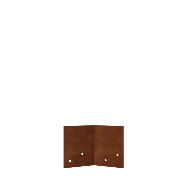 Medžiaga Ši jungiamoji plokštė pagaminta iš aukštos kokybės Corten-A plieno plokštės. Šios rūšies metalas pasižymi unikalia savybe sudaryti labai tankią oksido plėvelę (rūdžių sluoksnį). Dėl to rūdžių prasiskverbimas yra neįmanomas. Tankus oksido sluoksnis apsaugo giliau gulinčią medžiagą nuo deguonies, todėl oksidacija gerokai sulėtėja, o korozija tęsiasi. Sukabinimo plokštė tiekiama be rūdžių, pilko metalo spalvos. Rūdijimo procesas prasideda per pirmuosius du mėnesius; apdoroti nereikia. Vykstant rūdijimo procesui, apvadas gali nusilupti. Korteno plienas yra metalo lydinys, sudarytas iš geležies, į kurią pridėta vario, fosforo, silicio, nikelio ir chromo.